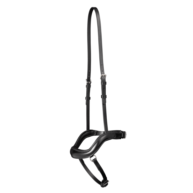Anatomisch geformtes, weich unterlegtes Reithalfter bei dem der Nasenriemen etwas tiefer sitzt als beim klassischen Reithalfter. Mit seitlich angesetzten Sperrriemen für mehr Nüsternfreiheit. Weiches Kinnpolster für mehr Komfort.