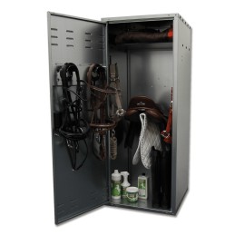 Saddle locker for self-assembly. Easy to construct with instructions, suitably packaged for transport. Supplied with two saddle holders, two bridle holders, hooks for small items and a storage compartment.