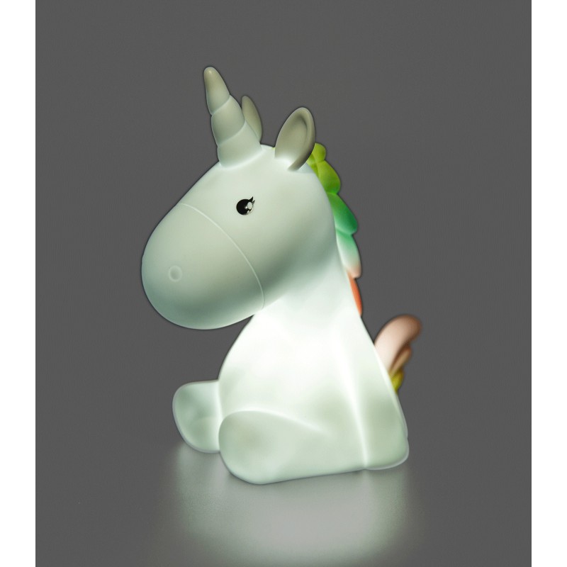 This magical unicorn escorts small and big unicorn fans into the land of nod with its soft light. In plastic, with changing pastel colours, touch function and 15-minute timer. Includes 2 m USB cable, gift box. From 3+ years.