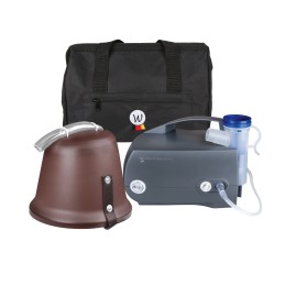 Inhalator voor de onderste en bovenste ademhalingswegen en voor het diep inademen van de luchtwegen met medicijnaerosolen. Paardvriendelijk, zeer effectieve bediening. Geleverd met inhalatiemasker/mand, vernevelaar en praktische opbergtas. Met dit apparaat kan elk wateroplosbaar medicijn rechtstreeks naar het longoppervlak worden getransporteerd. Dit zorgt voor een optimale en directe werking van de medicatie! Deeltjesgrootte: Ca. 75,74±0,02% binnen een bereik van 0,5 tot 5 µm. Maximale vulhoeveelheid van het medicijnbekertje 8 ml.